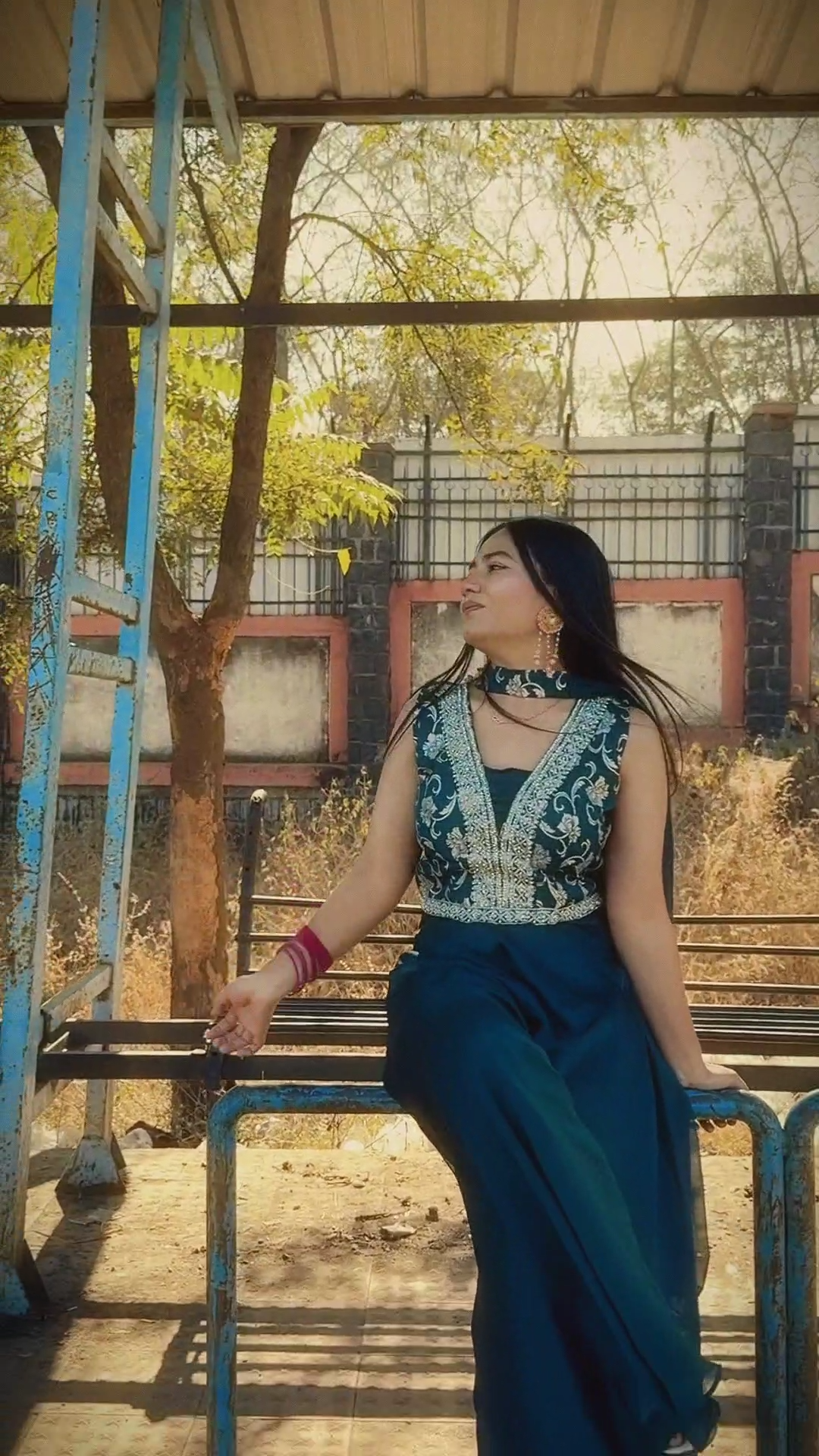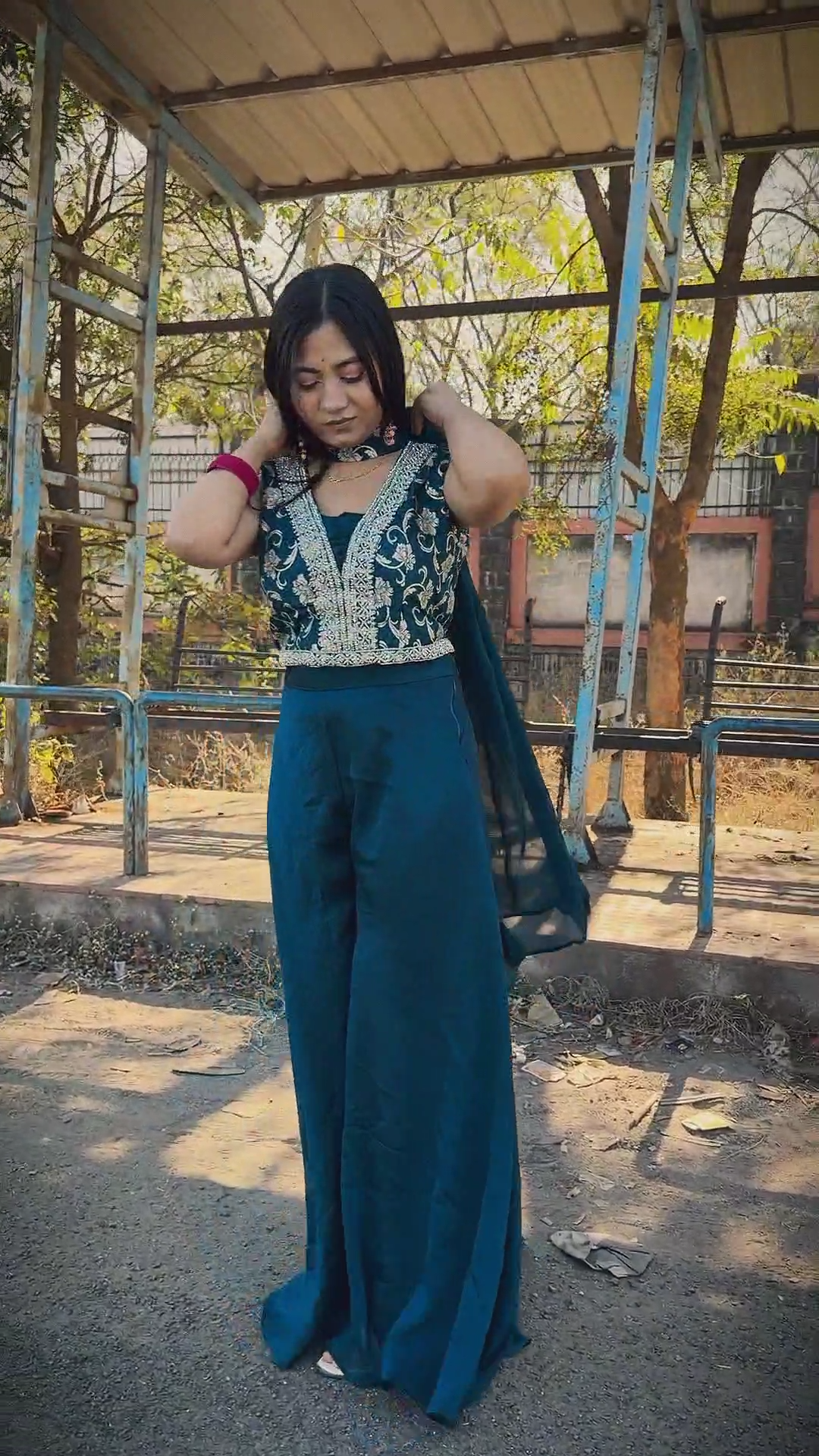 Elegant Peacock Blue Embroidered Palazzo Suit Set with Dupatta