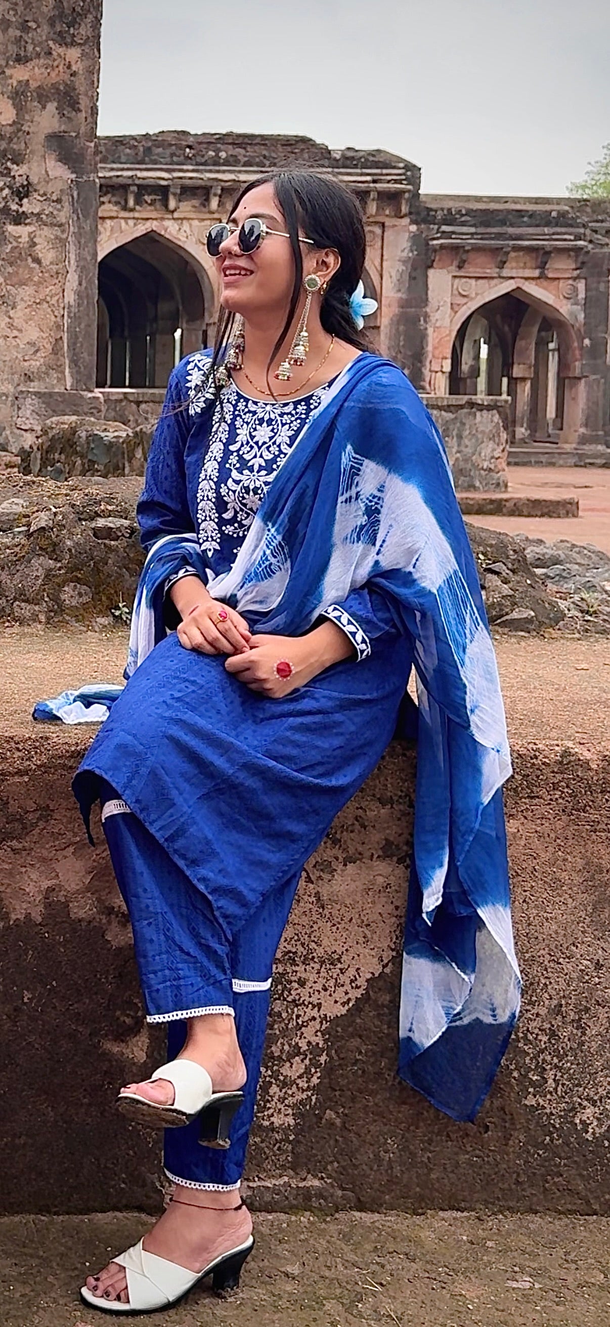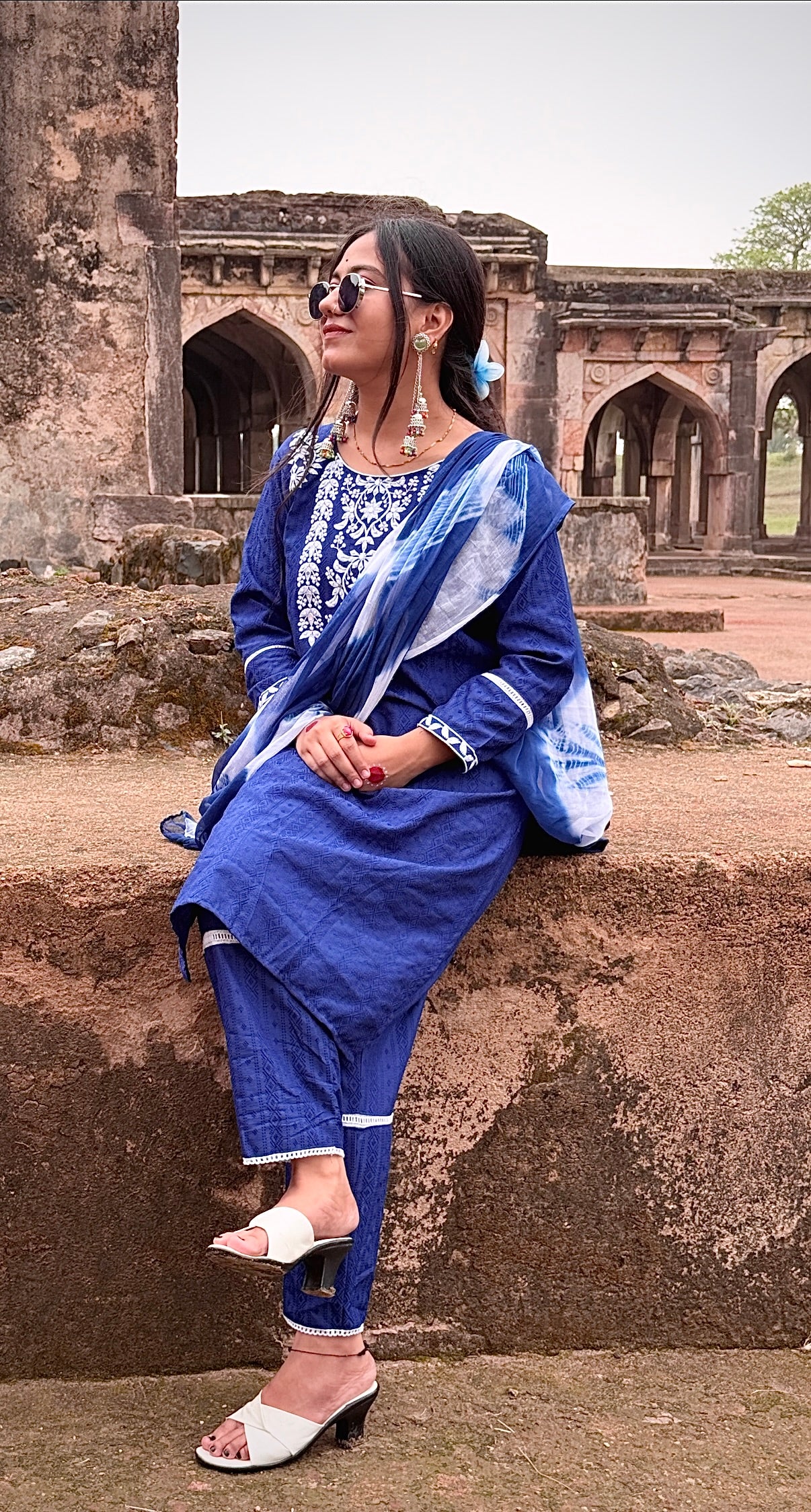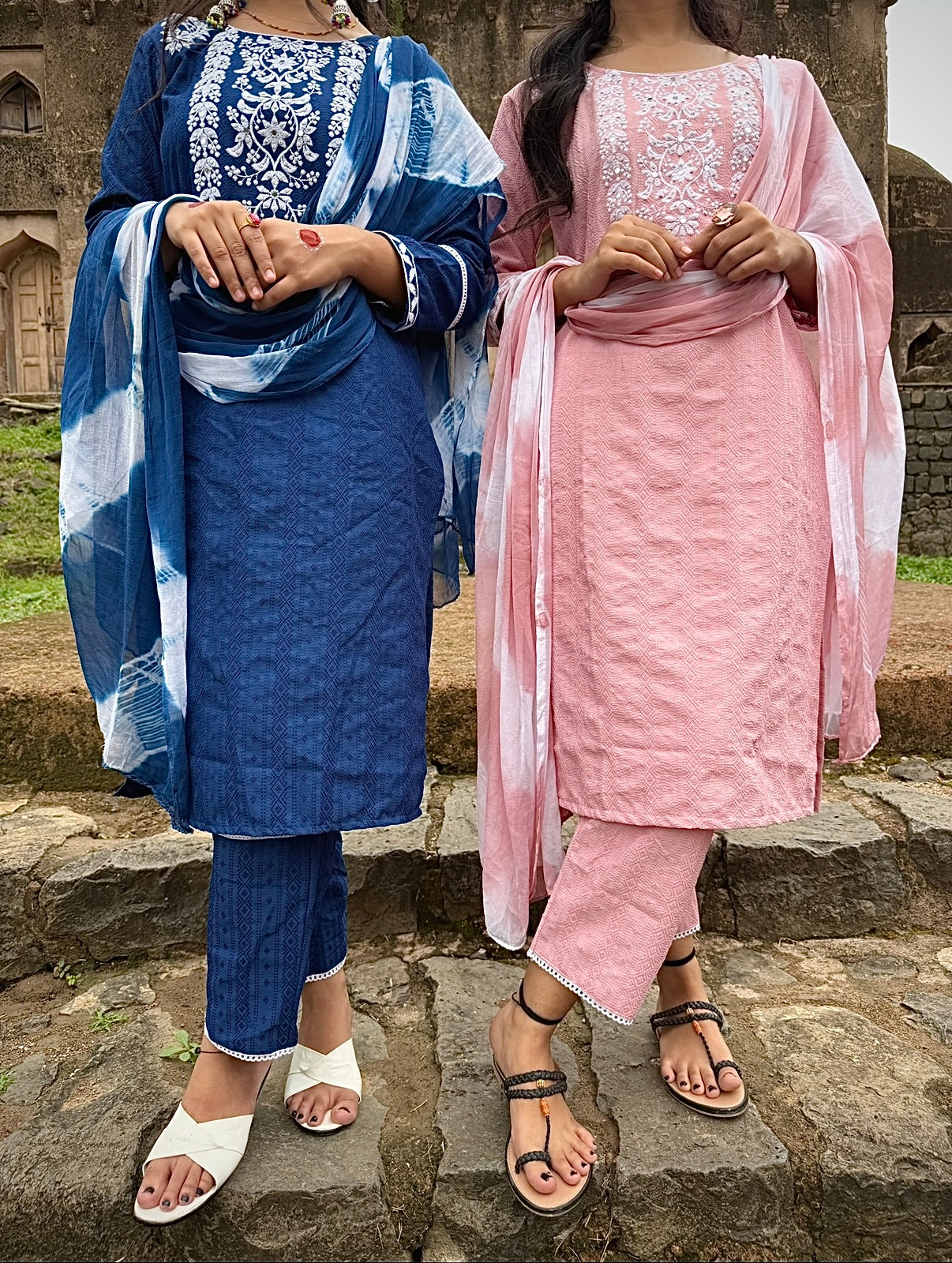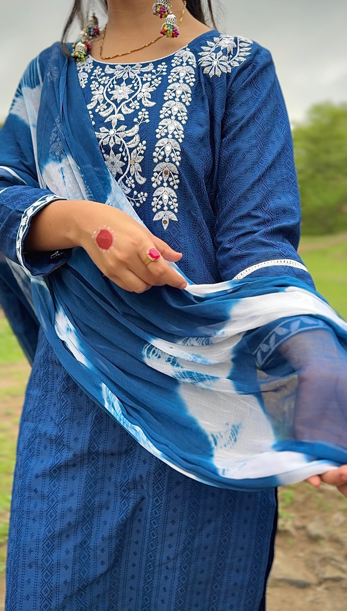 Experience effortless grace with this elegant purple cotton suit set, designed for modern women who appreciate timeless ethnic style. The kurta showcases beautiful white floral embroidery on the neckline and yoke, paired with straight-fit matching pants for a sleek silhouette.