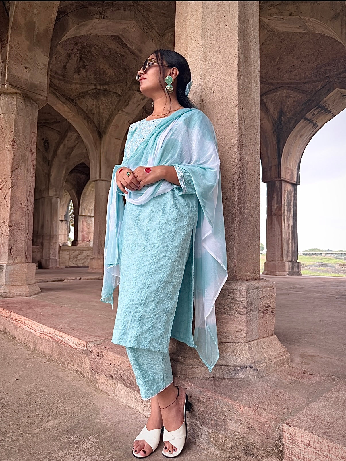 Trendy popcorn Embroidered Pant Suit Set for Women – Casual & Festive Wear